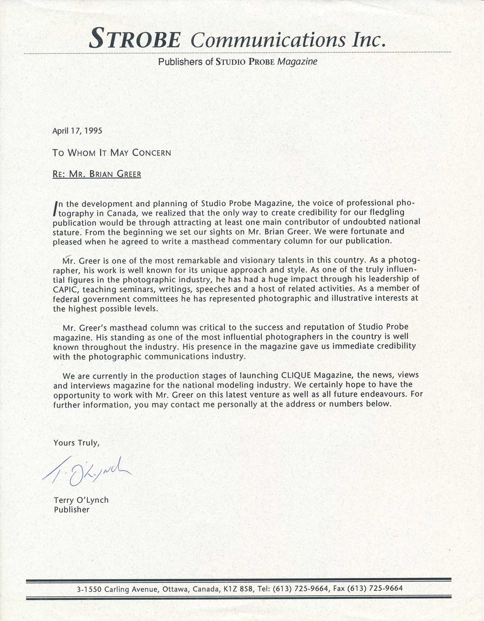 - Guest Lecturer (Algonquin College, Seneca College, Professional Photographers of Ontario, Professional Photographers of Canada, Pre-Press Assn etc.)