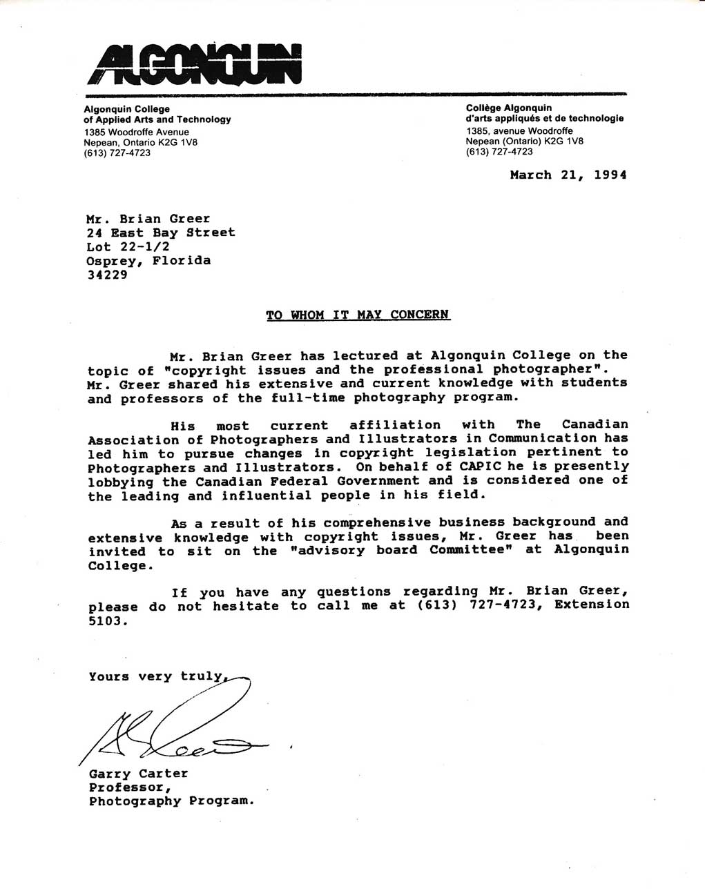 - Algonquin College Curriculum Advisory Committee (1992-95)