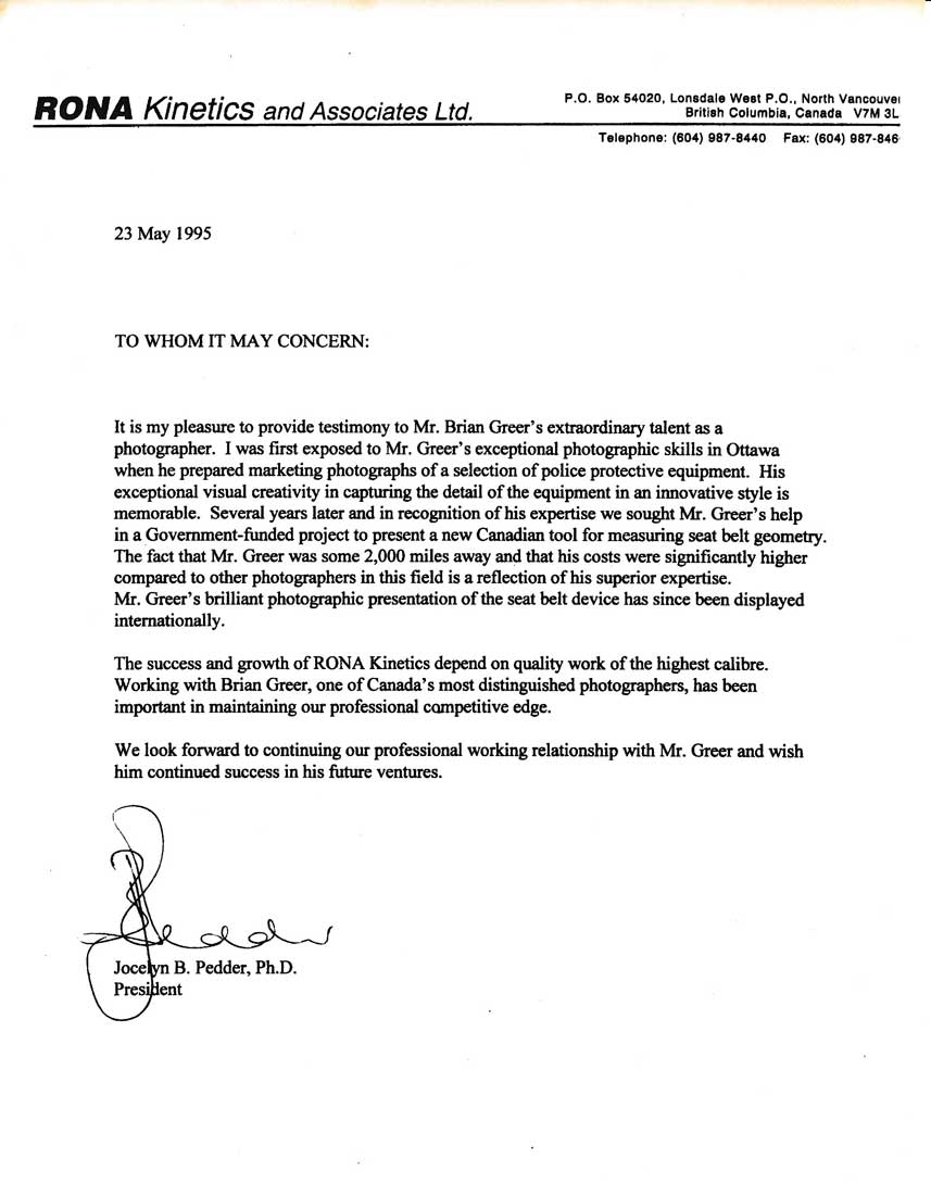 | Spar Aerospace Recommendation and Confirmation | For many years, Brian Greer worked closely with Spar Aerospace on a number of advanced and highly technical projects. | Details | |